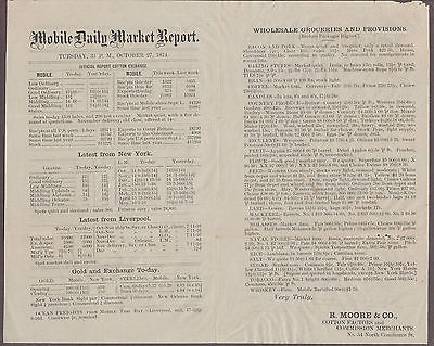 Mobile Daily Market Report 1874 Broadside Commodity Prices Cotton, Gold, Silver,