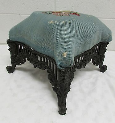 ANTIQUE CAST IRON VICTORIAN STOOL BENCH OTTOMAN BASE STAND ORNATE CLAW FEET