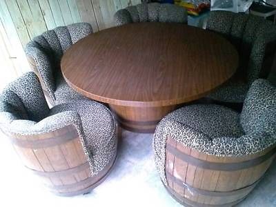 Title (ebay affiliate link): 1960's Whiskey Barrel Table And Chairs Dark Wood Tone