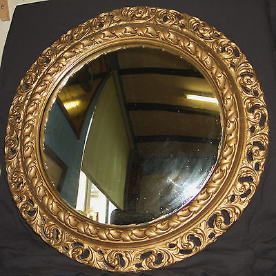 VINTAGE AISONEA ROUND GOLD PAINTED WOODEN WALL MOUNTED CONVEX MIRROR