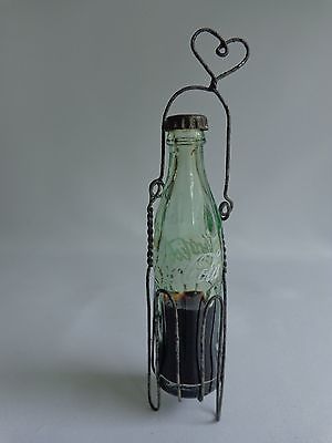VINTAGE MINI COCA COLA/COKE BOTTLE/CAP IN WIRE CARRIER/HOLDER 3 1/8" H