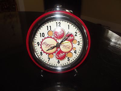 BEAUTIFUL ALL METAL COLLECTIBLE COCA-COLA RED & CHROME ALARM CLOCK