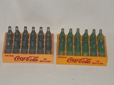 1970's VINTAGE COCA COLA MINI YELLOW CASE WITH 24 BOTTLES Green Plastic Coke Toy