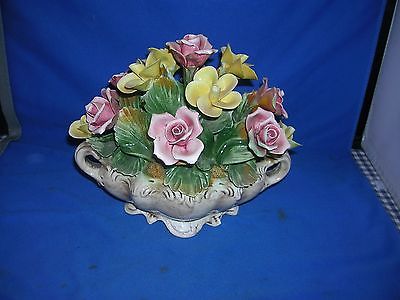 Title (ebay affiliate link): Pretty Pink & Yellow Rose Floral Figural in Bowl - 8.5" x 9" - Capodimonte ?