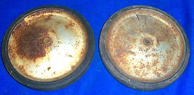 VINTAGE SET METAL HARD RUBBER WHEELS WAGON SCOOTER PEDAL CAR