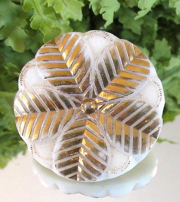 Title (ebay affiliate link): ANTIQUE LARGE WHITE MILK GLASS FLOWER BUTTON W/ GOLD HIGHLIGHTS Q21