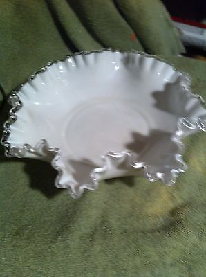 Vintage Fenton Silver Crest Large Milk Glass Bowl -Ruffled And Fluted Rim- 11"