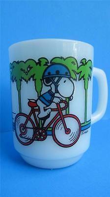 Vtg Fire King Mug Snoopy Pedal Power 1958 Anchor Hocking Milk Glass Cup Peanuts