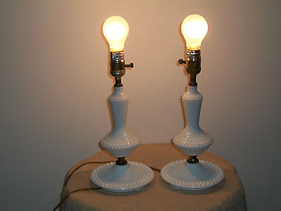 Vintage Pair White Milk Glass Hobnail Boudoir Bedroom Nightstand Dresser Electri