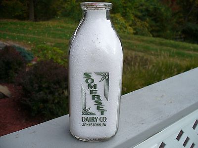 Somerset Dairy Co Green Lettered Quart Milk Bottle Johnstown Pa Cambria County