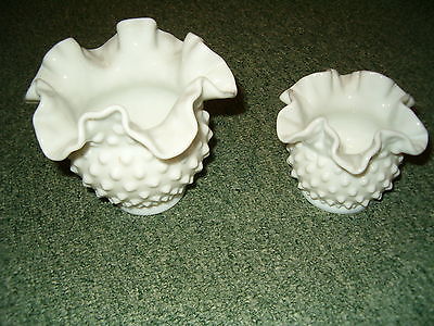 SET OF VINTAGE WHITE FENTON HOBNAIL RUFFLE TOP MILKGLASS VASES SIZES