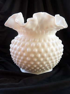Vintage White Milk Glass Hobnail Ruffled Edge Vase/Bowl