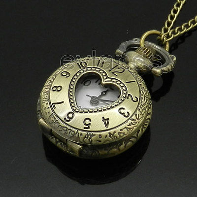 Title (ebay affiliate link): Bronze Antique Heart Quartz Pocket Watch Necklace Clock Pendant Gift Chain P901