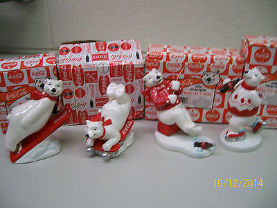 Coca Cola Polar Bear Figurines - Ice Skating Sledding Ice Fishing Skiing