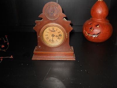 Antique small wood cae shelf clock