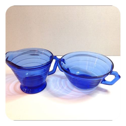 Title (ebay affiliate link): Vintage Depression Glass Moderntone Cobalt Blue Creamer And Open Sugar Bowl