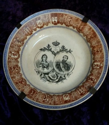 Title (ebay affiliate link): Belgium 1860s Boch Freres Keramis Ceramic Plate King Leopold II Queen Mariette