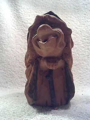 Vintage Hand Carved Primative Wood, Old Lady with Cane Titled, "Swallow"
