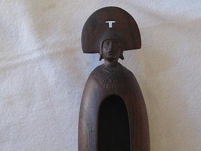 Carved Brown Wooden Bowl Indian Woman Design