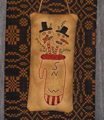 Title (ebay affiliate link): Primitive Stitchery Hanger/Ornament ~ Two Snowmen In Mitten On Candy Cane Sticks