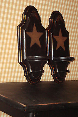 Title (ebay affiliate link): wall sconce set 2 wood candle peg black americana star western primitive shelf