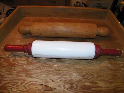 2 ANTIQUE PRIMITIVE ROLLING PINS MAPLE IMPERIAL WHITE MILK GLASS