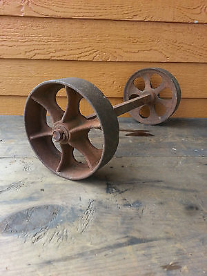 Old Antique Pair Wheels & Axle for Stationary Hit & Miss Engine Cart? See pics