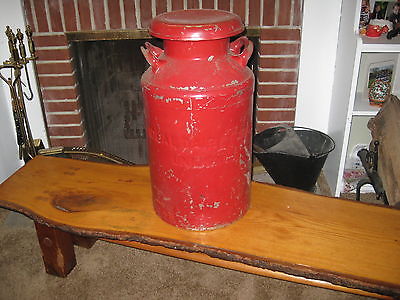 Antique 2 Handled Milk Can Vintage IDEAL DAIRY FARMS UNION N.J. Old Red Paint