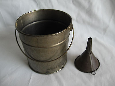 Vtg Tin Metal Pail Bucket & Funnel Old Rustic Shabby Primitive Farm Kitchen