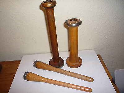 LOT of 4 Vintage Wooden Textile Spool Thread Spindles/Bobbins
