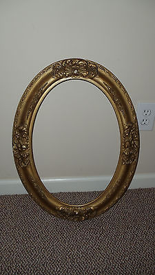 Antique Floral Gold Gesso Oval Wood Picture Frame Fits 13 1/2 X 19 1/2 w Glass