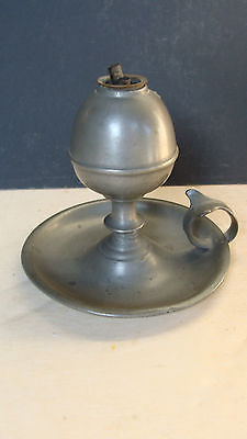 19th C dbl burner pewter egg-top whale oil finger lamp, as is *
