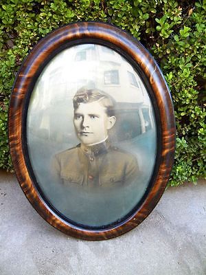 22 3/4" ANTIQUE OVAL BUBBLE / CONVEX GLASS PICTURE FRAME WITH WWI SOLDIER PHOTO