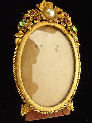 Title (ebay affiliate link): Small Vintage Victorian Style Ormolu Oval Picture Frame w/ Jeweled Floral Motif