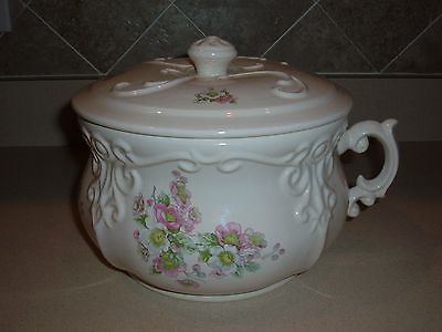 Antique Ceramic Chamber Pot with Lid ~ Cream w/ Pink & White flowers