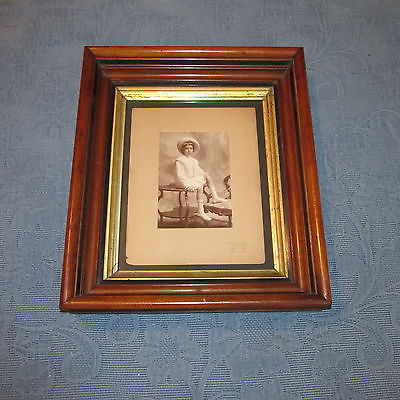 Antique Victorian Deep Well Walnut Picture Frame & Photo of a Girl & Bonnet
