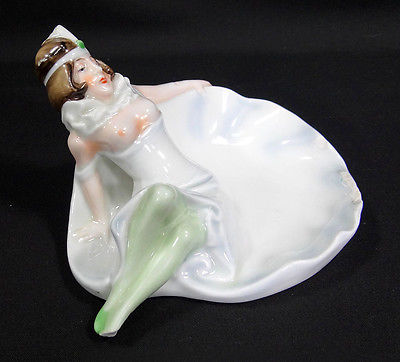 Title (ebay affiliate link): 1930s ART DECO PORCELAIN PIN TRAY ASHTRAY NUDE RISQUE LADY RECLINING FIGURINE