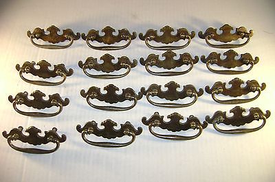 Lot of 16 Vintage Brass Drawer Pulls 2 1/2" between screws 4 3/4" overall width