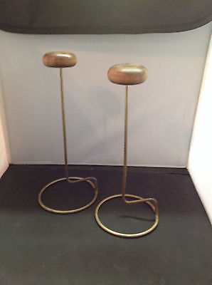 Title (ebay affiliate link): Pair of Vintage Hat Stands Wood Metal Shelf Sitter Hat Stand Counter Hat Stand