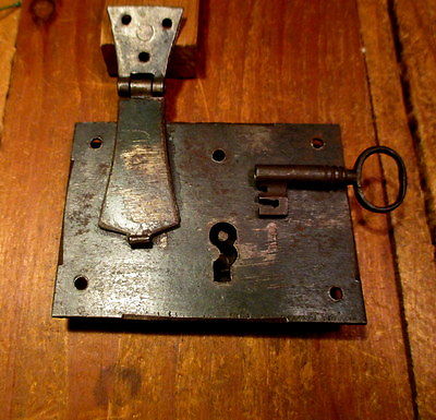 Title (ebay affiliate link): Early Iron Trunk Lock Vintage Chest Lock with Key Old Trunk Hardware