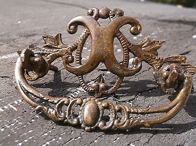 ANTIQUE AMERICAN HARDWARE LARGE FANCY CAST BRASS DRAWER PULL FURNITURE TRIMMING
