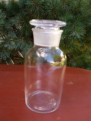 APOTHECARY REAGENT STYLE BOTTLE / JAR WITH FULL GLASS STOPPER . 7 INCH