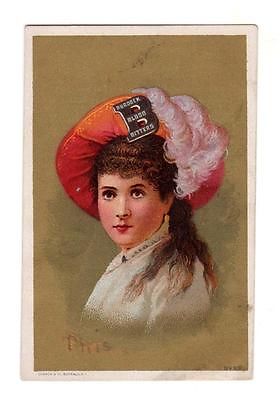 c1890 BURDOCK BLOOD BITTERS Quack Med. Trade Card BEAUTIFUL LADY Forreston IL