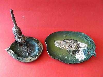 Antique Cold Painted metal Trays Austrian Good Luck Clover horseshoe Cat & Dog
