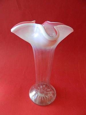 Title (ebay affiliate link): Tiffany style Slender Vase Vaseline cranberry 4 cornered Rim Art Nouveau 1910