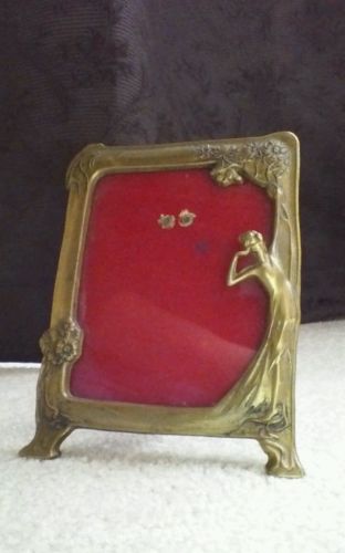 Gorgeous Antique Vintage Brass Art Deco Woman Flowers Photo Frame