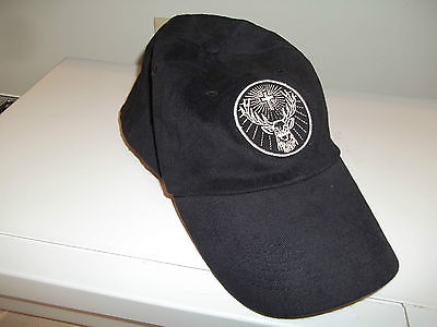 JAGERMEISTER 'SHOTS HAPPEN' black twill ballcap SIZE M-L FLEX FIT NWOT N/R
