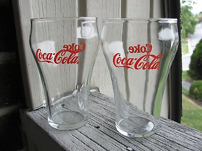 SET OF TWO 12 OUNCE BELL SHAPE COCA COLA GLASSES RED LETTERING