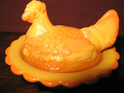 Title (ebay affiliate link): Orange milk glass salt cellar celt hen chicken on nest basket dish rooster chick