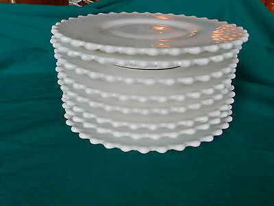 Westmoreland White Milk Glass English Hobnail Pattern 8 Salad Plates ~ Dishes